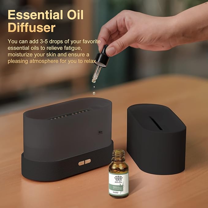 Transform your space into a tranquil oasis with our Flame Diffuser Humidifier. This sleek and stylish diffuser not only adds a touch of elegance to any room but also helps to create a soothing ambiance. The beautiful flame effect, creates a warm, cozier atmosphere just like in a real campfire, adding holiday ambiance to your room.