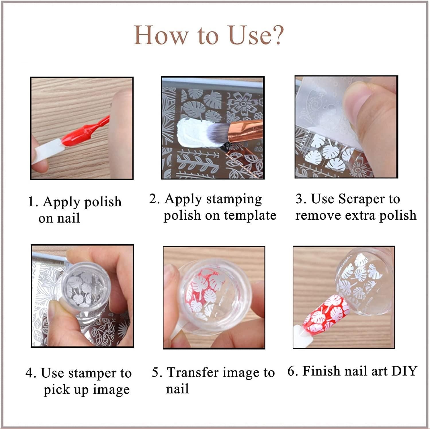✔ Easy to use and precise: The Trendy Nail Stamp is transparent, so you can see through it to determine the exact position for transferring the images. Use the scraper to scrape off excess nail polish from the plates in no time. Then wipe off the residue with alcohol or a mild detergent to use again.